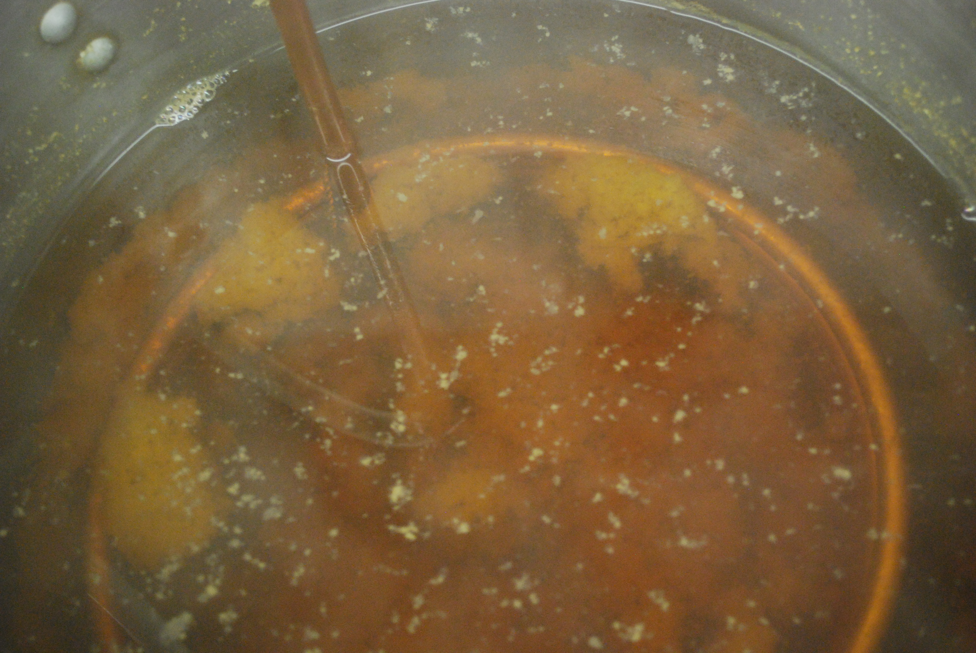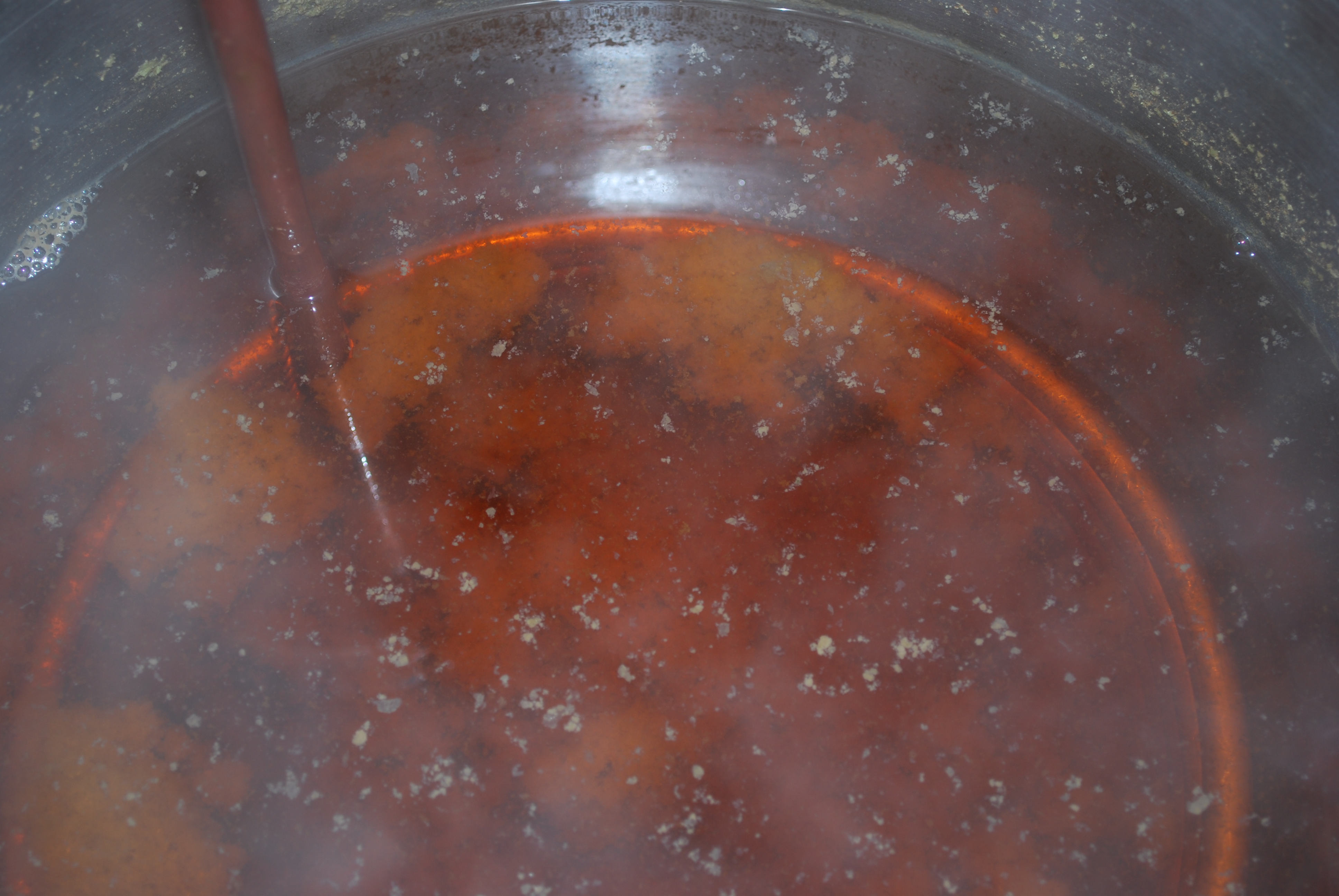 SMASHWAR displays that terrific rising-yeast-dough sweetness that I, and at least some readers here, know and love. Tasted alongside the other wort, this one is bright and comparatively fruity. It came out of the boiler a rich gold with big gorgeous snotty gobbets of cold break (no kettle finings used in either boil).